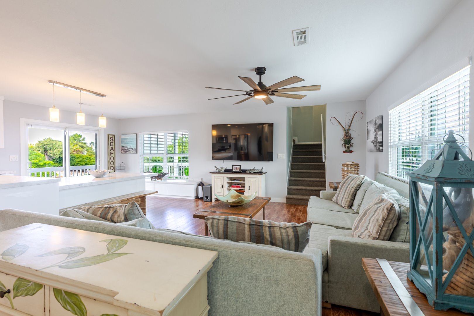 Indulge in the charm of this splendid split-level residence nestled in the heart of the captivating Florida Keys. This distinctive property comfortably accommodates up to 16 guests across its seven well-appointed bedrooms, offering an ideal haven for two families seeking both shared moments and personal privacy within its thoughtfully designed layout.